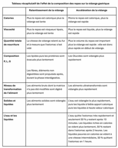 Vidange de l’estomac influencée par la composition et la texture des repas